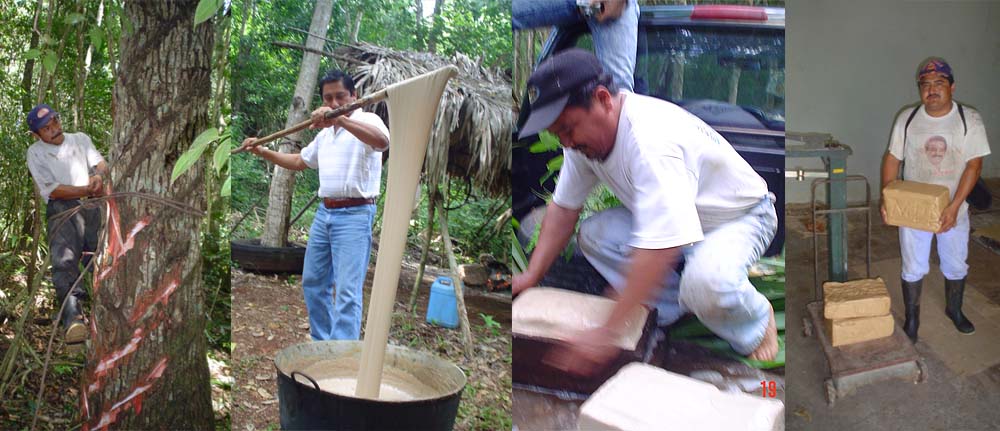 Para la preparación del chicle, el látex se hierve hasta deshidratarlo. Una vez realizada la cocción se vierte el chicle en bastidores de madera para producir una marqueta de pasta fría de chicle.